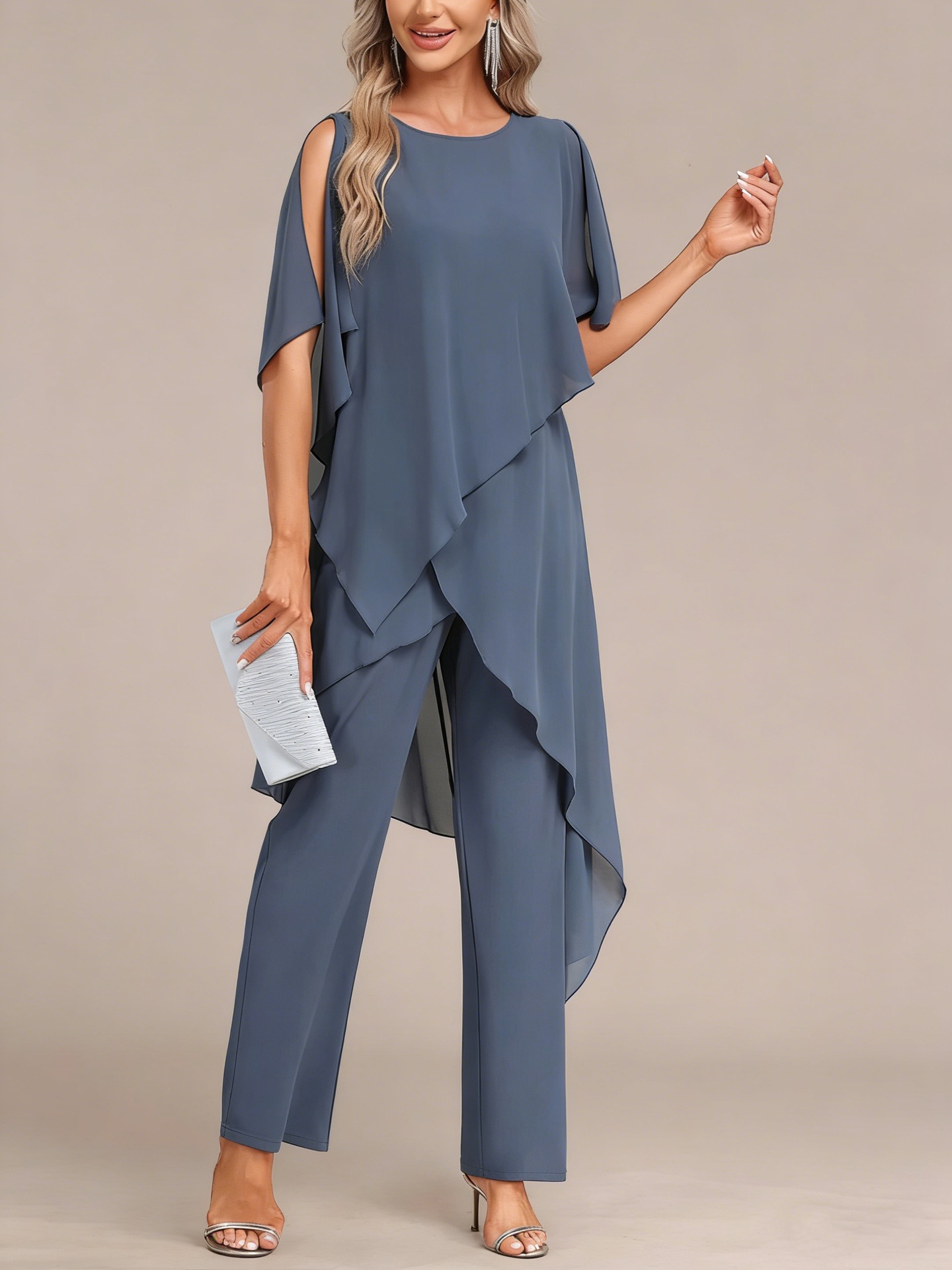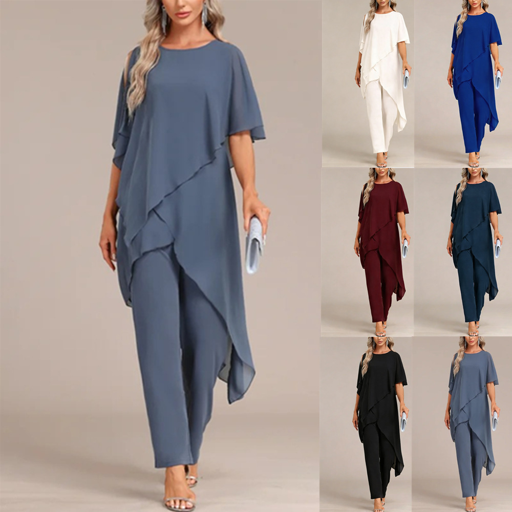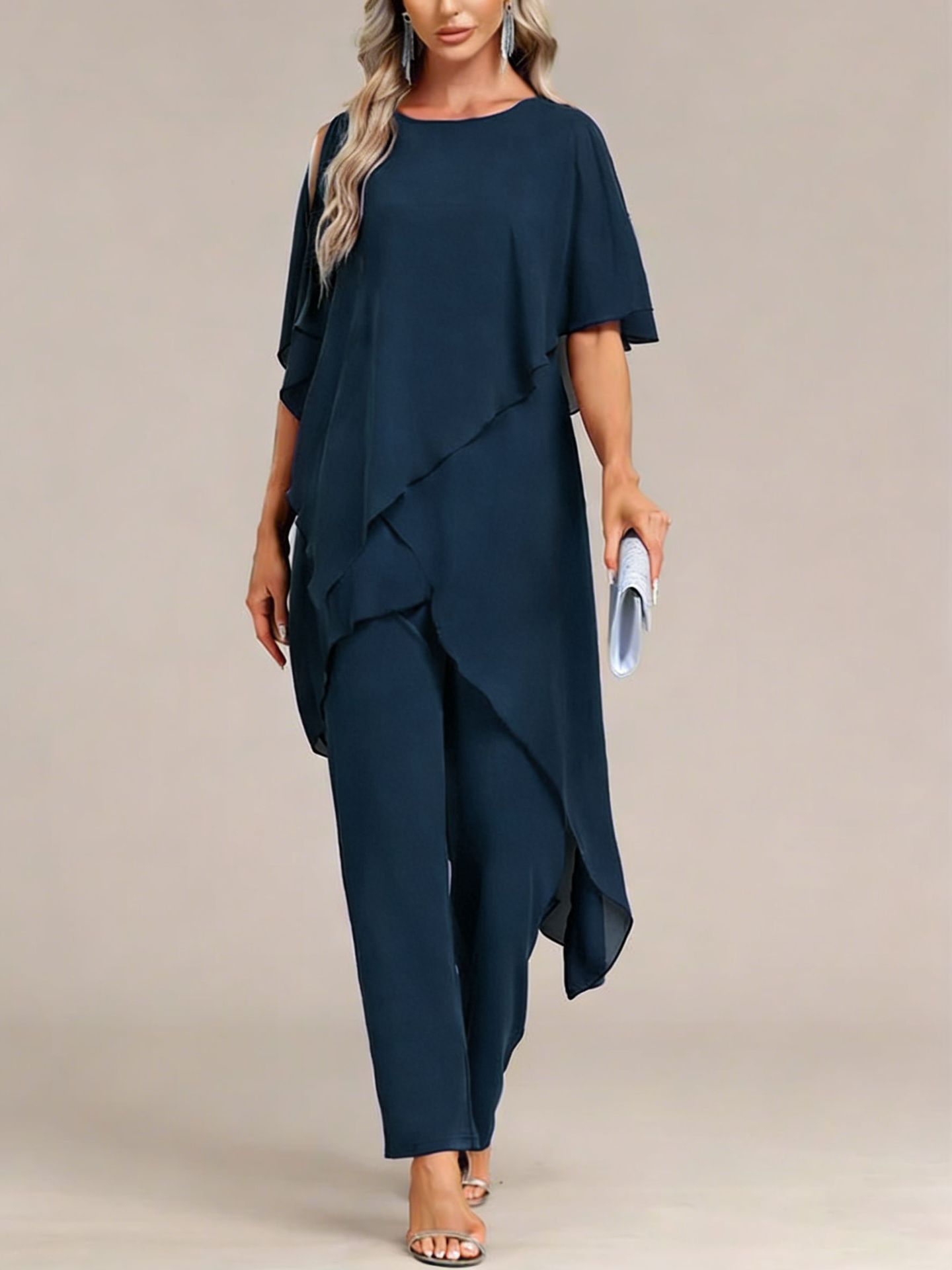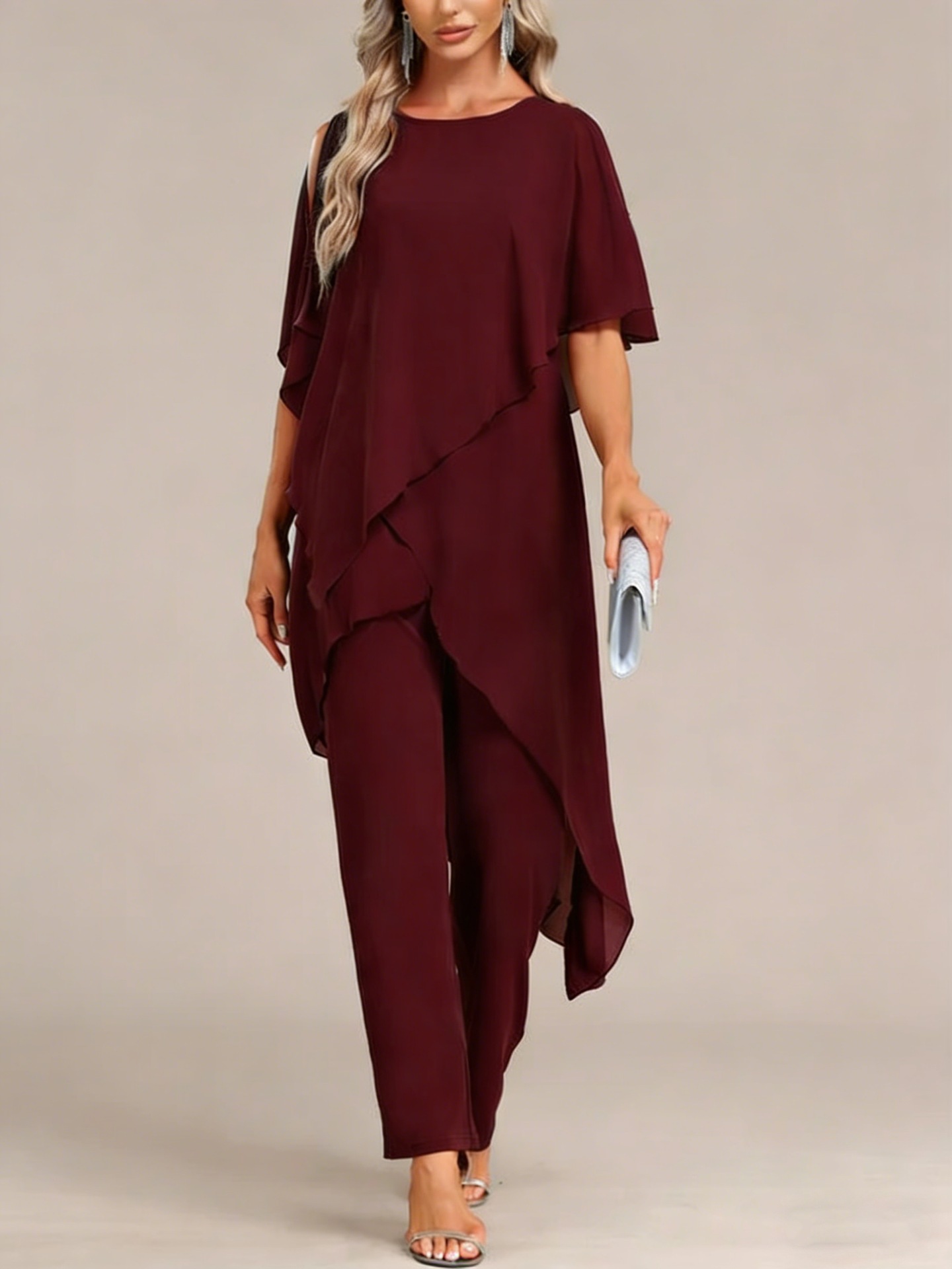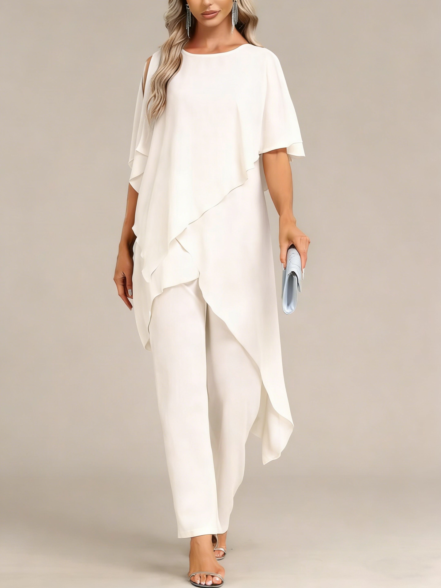 Women's Off-shoulder Irregular Top And Pants Two-piece Set